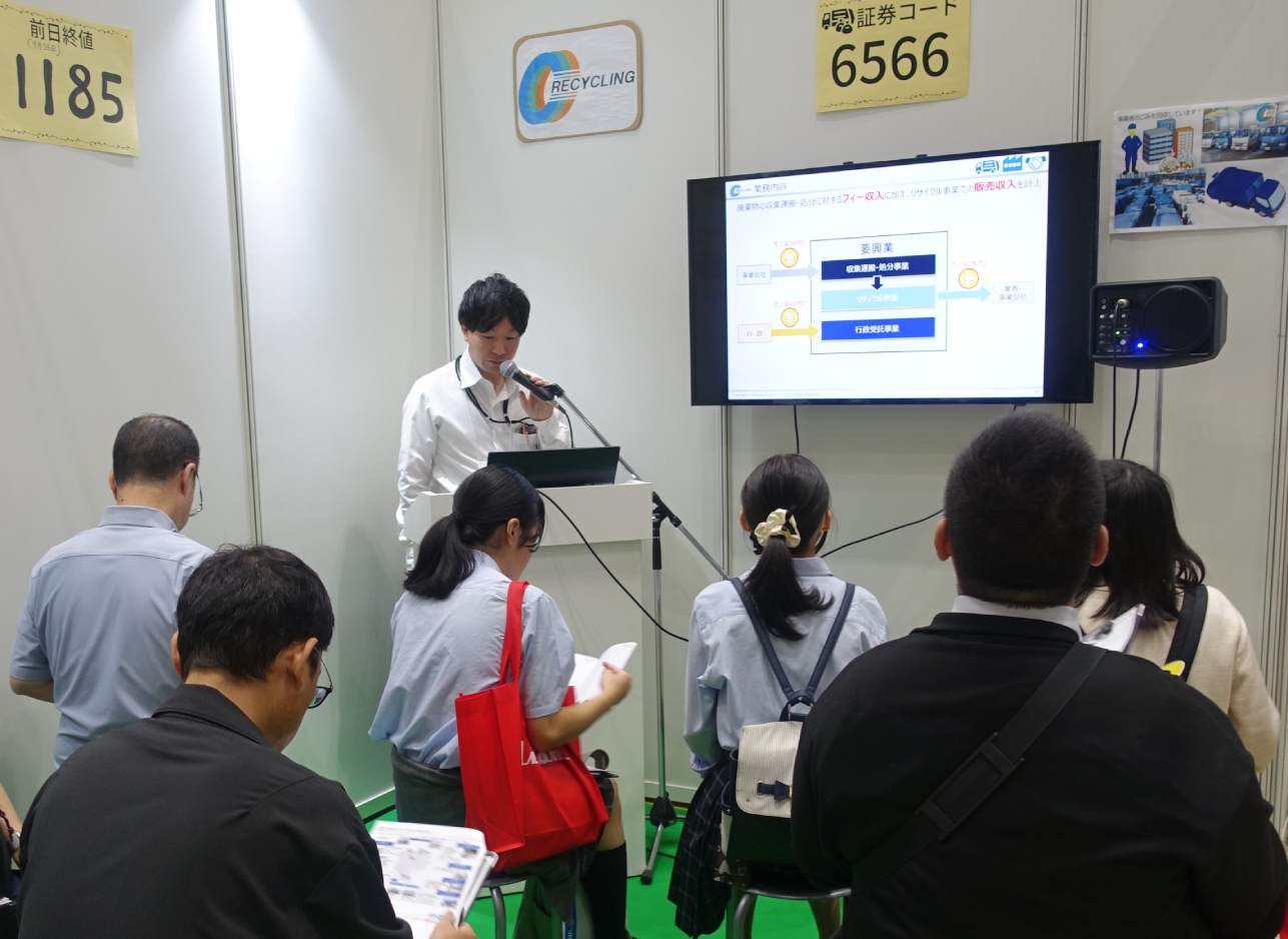 自社ブースで行った説明会では、多くの個人投資家の方々に立ち寄っていただき、事業内容や強み、業績などを知っていただくことができました。