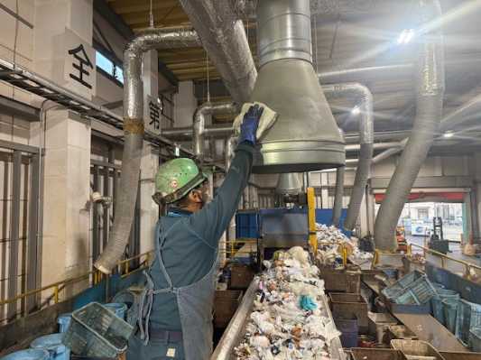 不燃ごみの再資源化に取り組む板橋リサイクルセンター。長期間摂取することで健康を損なう恐れのある粉塵を、徹底的に除去しています。